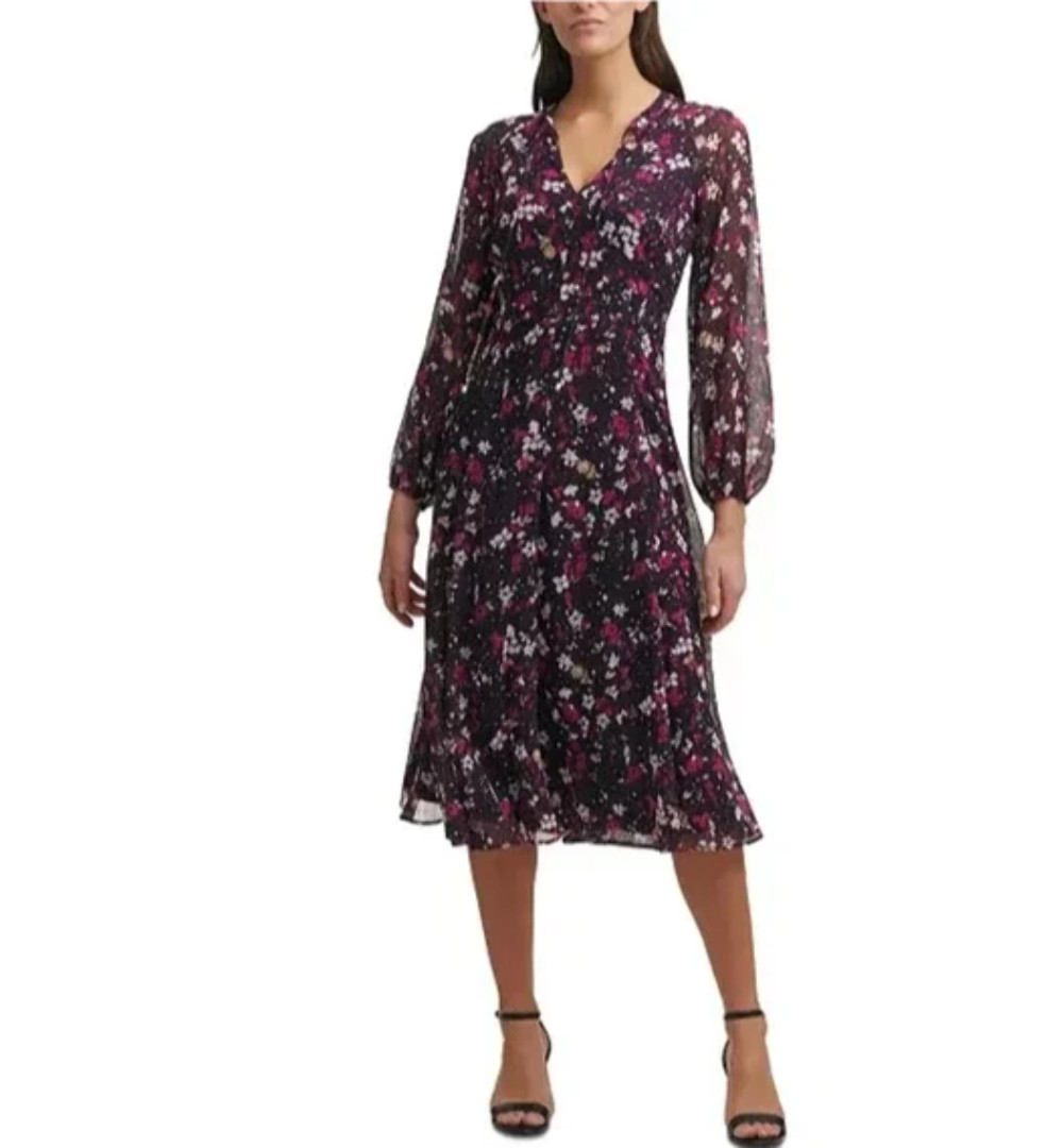 Tommy Hilfiger Carine Blouson Sleeve Midi Dress 10 Aubgne Multi Retail 129 Ebay